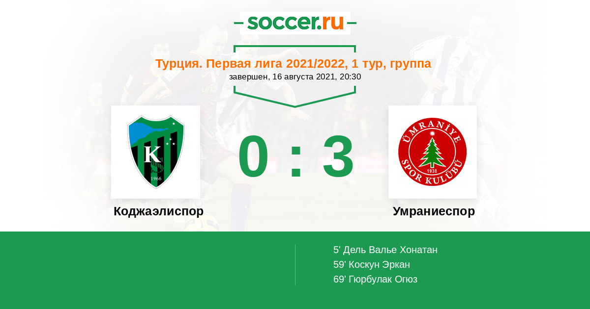 Протокол матча Коджаэлиспор против Умраниеспор