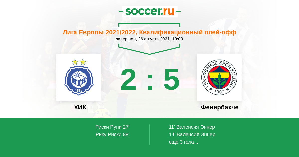 Протокол матча ХИК против Фенербахче