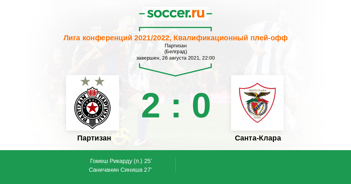 Протокол матча Партизан против Санта-Клара