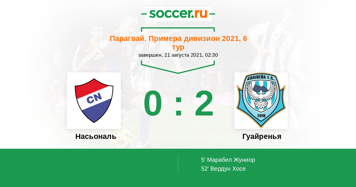 52' (0:2) Вердун Хосе (9) (Нуньес Хорхе (21))