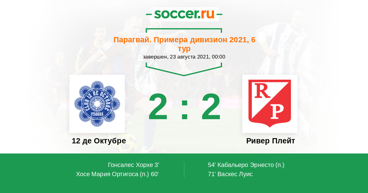 Протокол матча 12 де Октубре против Ривер Плейт