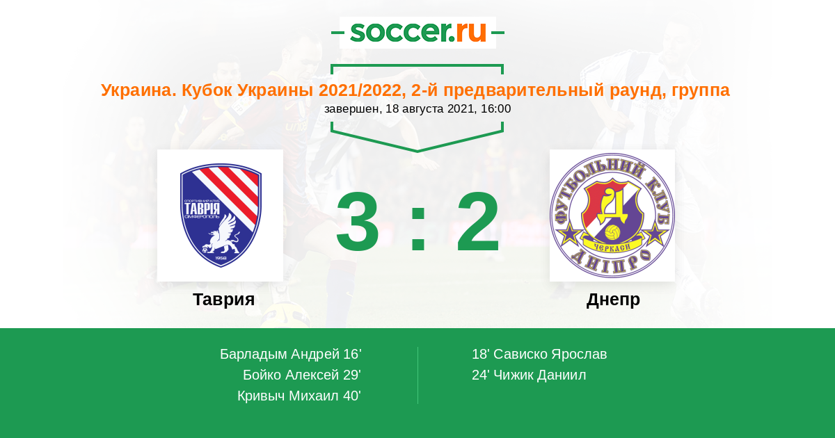 Протокол матча Таврия против Днепр