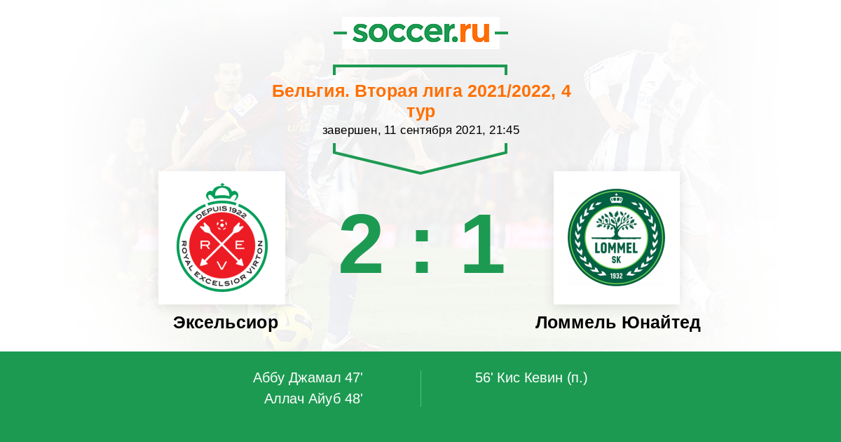 Протокол матча Эксельсиор против Ломмель Юнайтед