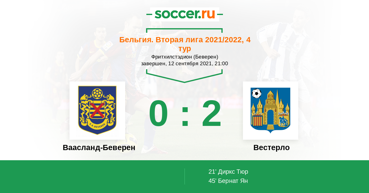 Протокол матча Ваасланд-Беверен против Вестерло