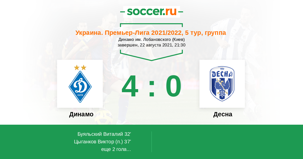 Протокол матча Динамо против Десна