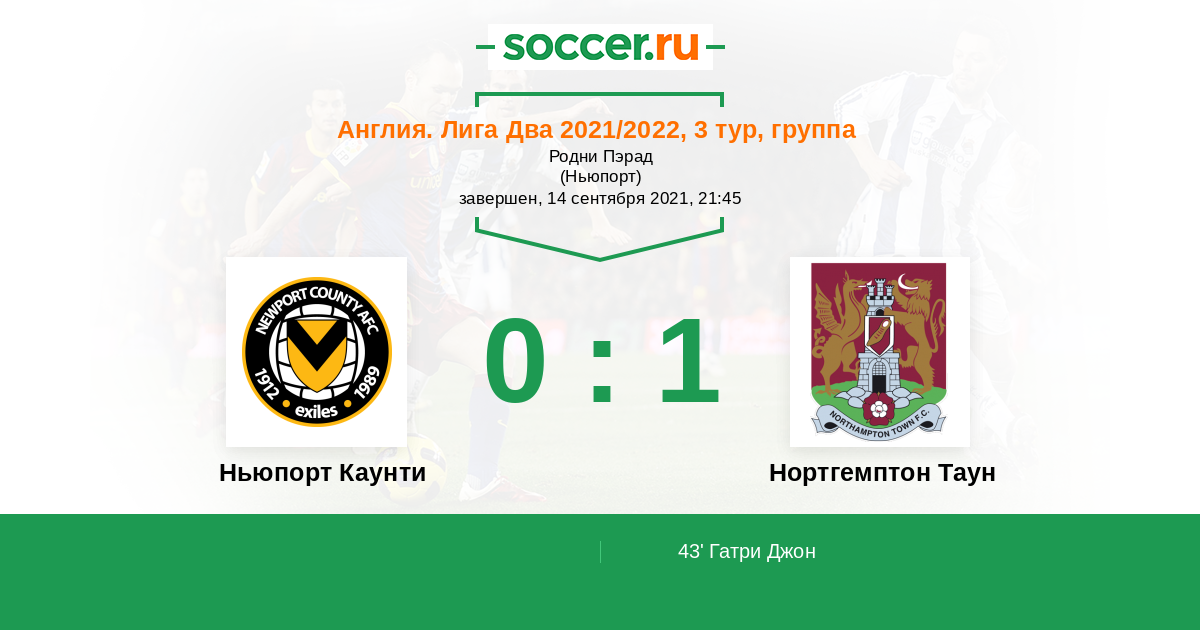 Протокол матча Ньюпорт Каунти против Нортгемптон Таун