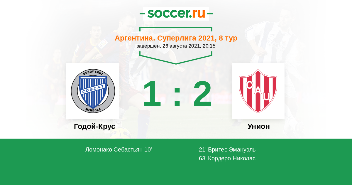 Протокол матча Годой-Крус против Унион