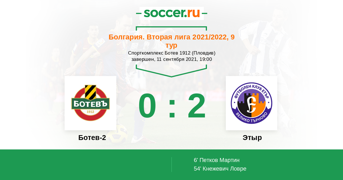 Протокол матча Ботев-2 против Этыр