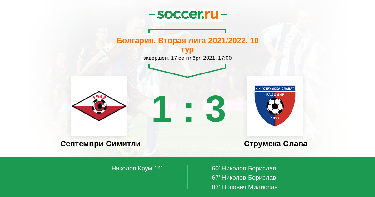 Протокол матча Септември Симитли против Струмска Слава