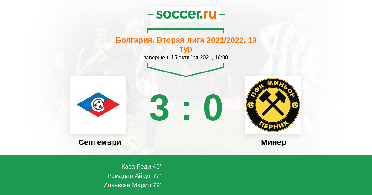 Протокол матча Септември против Минер