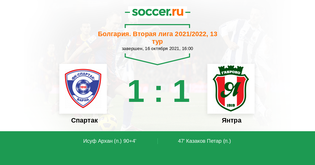 Протокол матча Спартак против Янтра