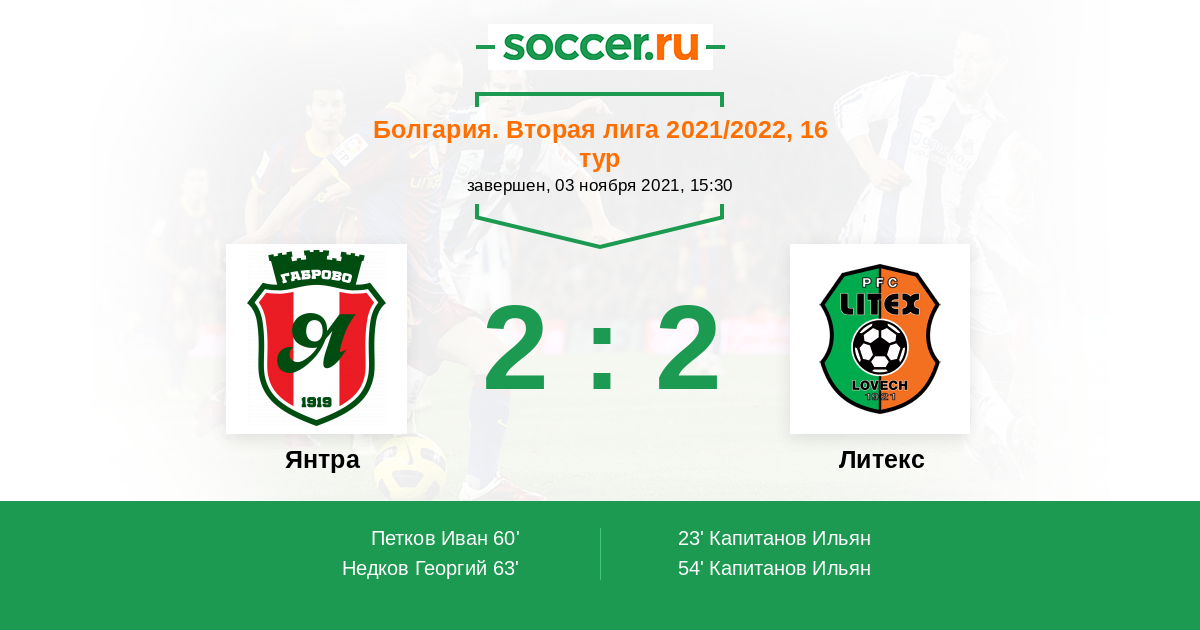 Протокол матча Янтра против Литекс