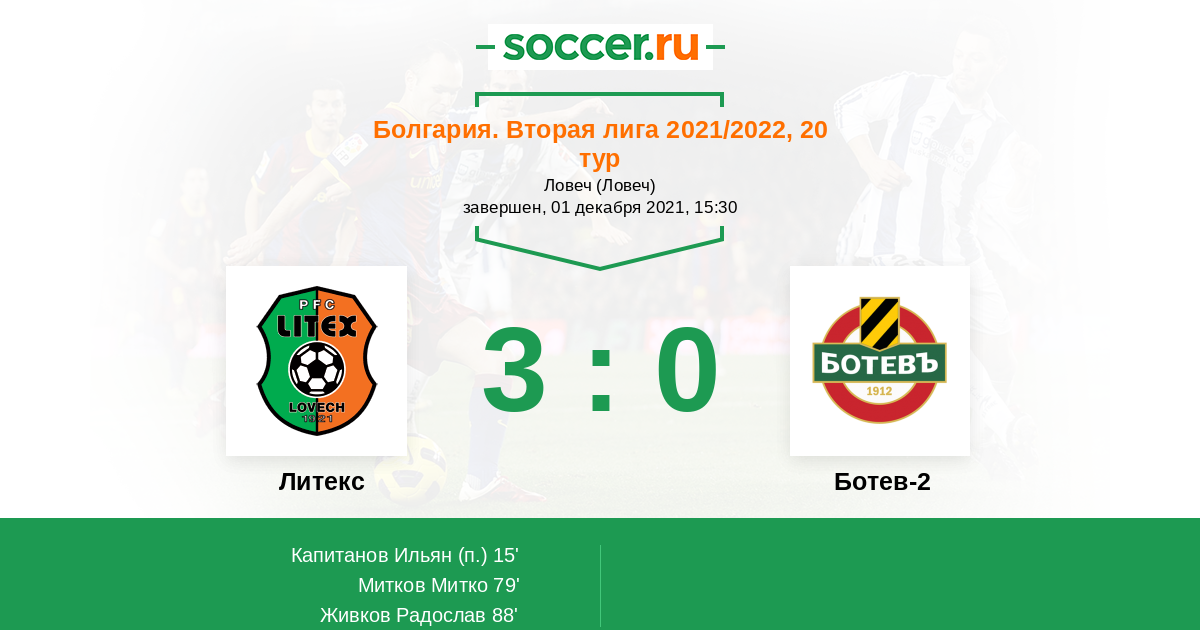 Протокол матча Литекс против Ботев-2