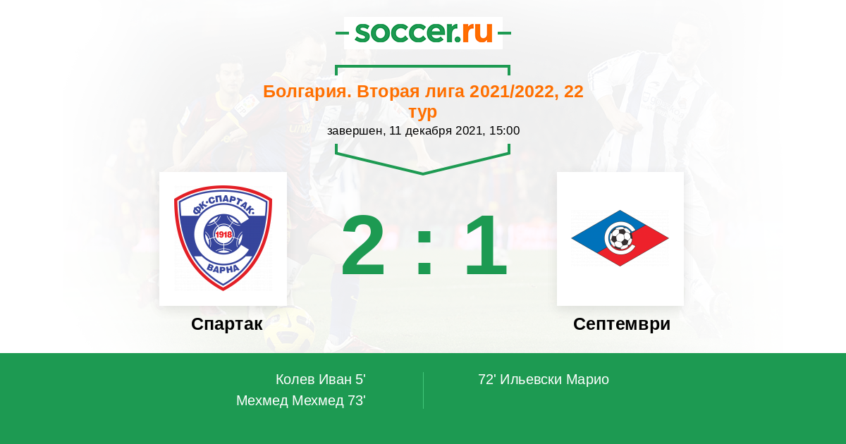 Протокол матча Спартак против Септември