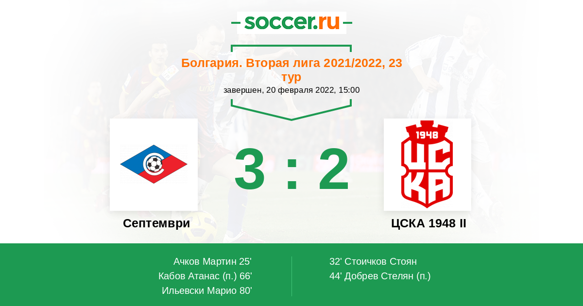Протокол матча Септември против ЦСКА 1948 II