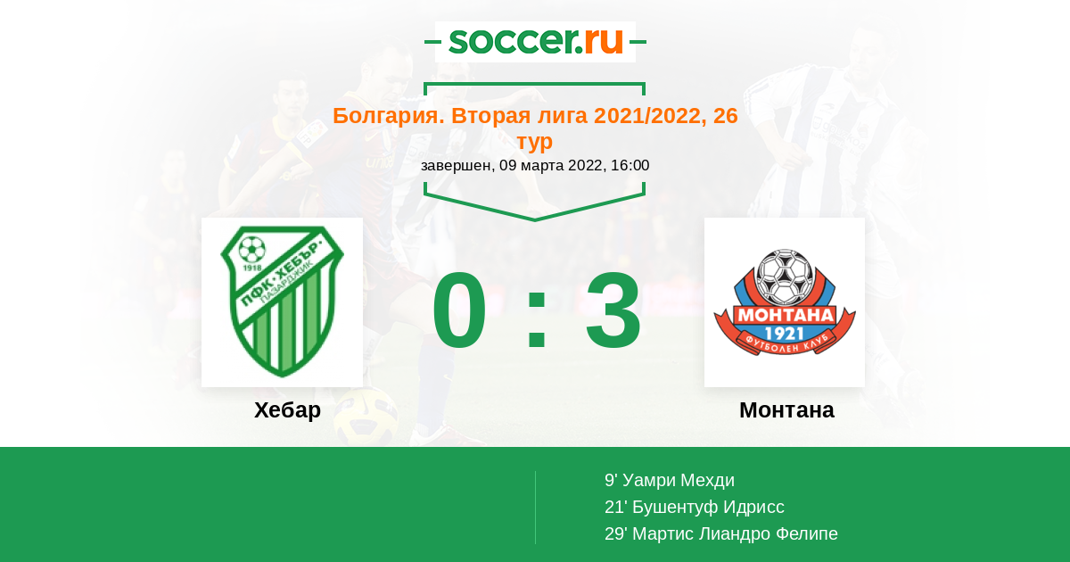 Протокол матча Хебар против Монтана