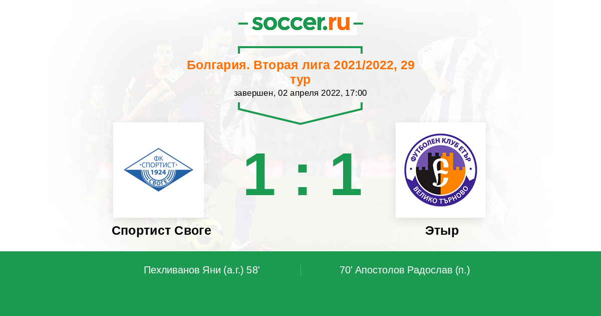 58' (1:0) Автогол Пехливанов Яни
