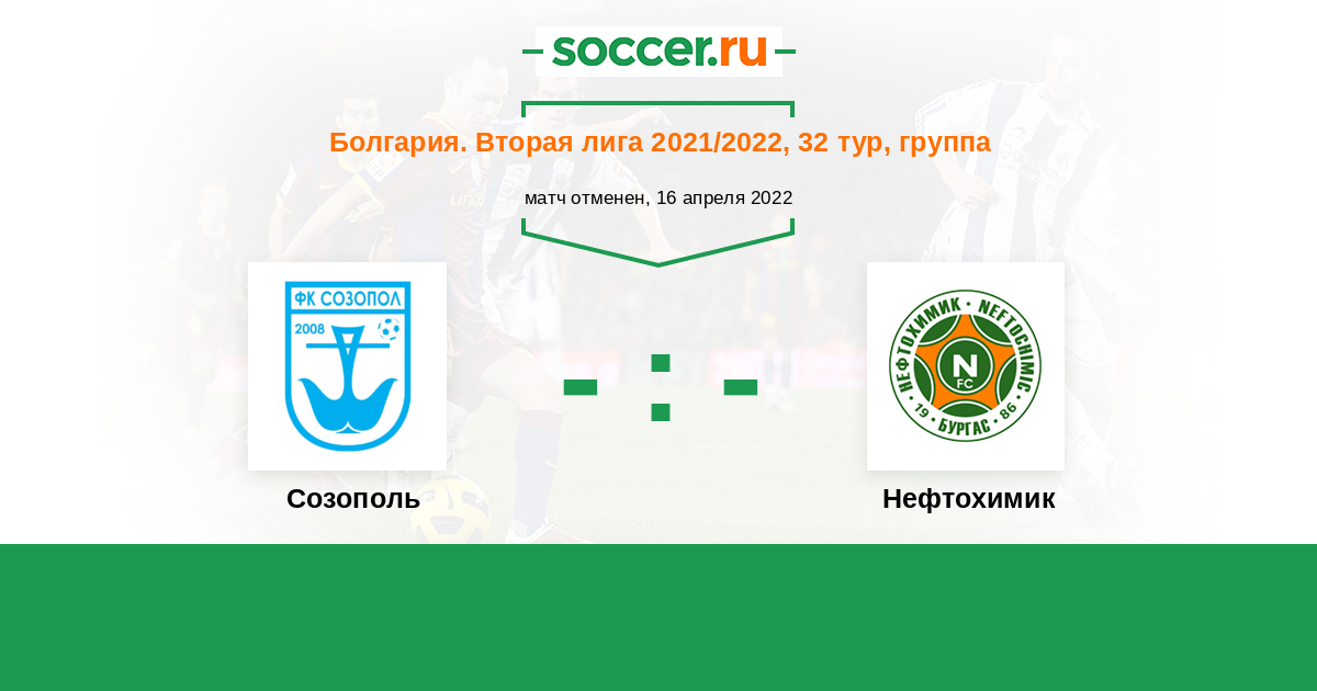 Болгария. Вторая лига 23.04.2016 Созополь Логотип футбольный клуб Созополь 1:1 Логотип футбольный клуб Нефтохимик (Бургас) Нефтохимик