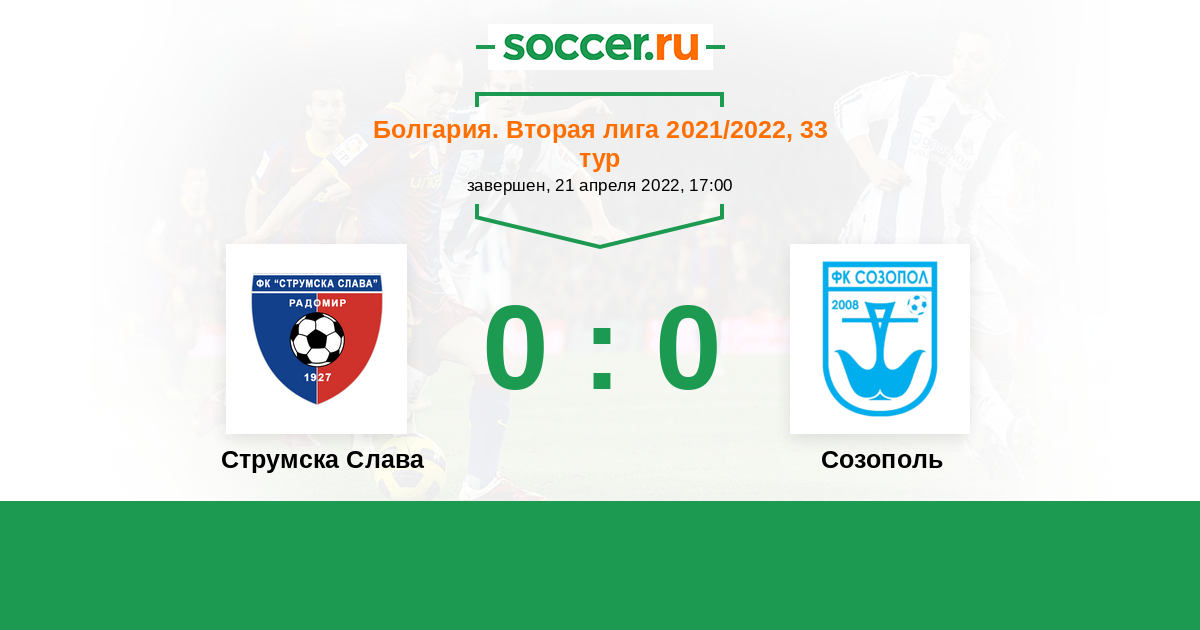 Протокол матча Струмска Слава против Созополь