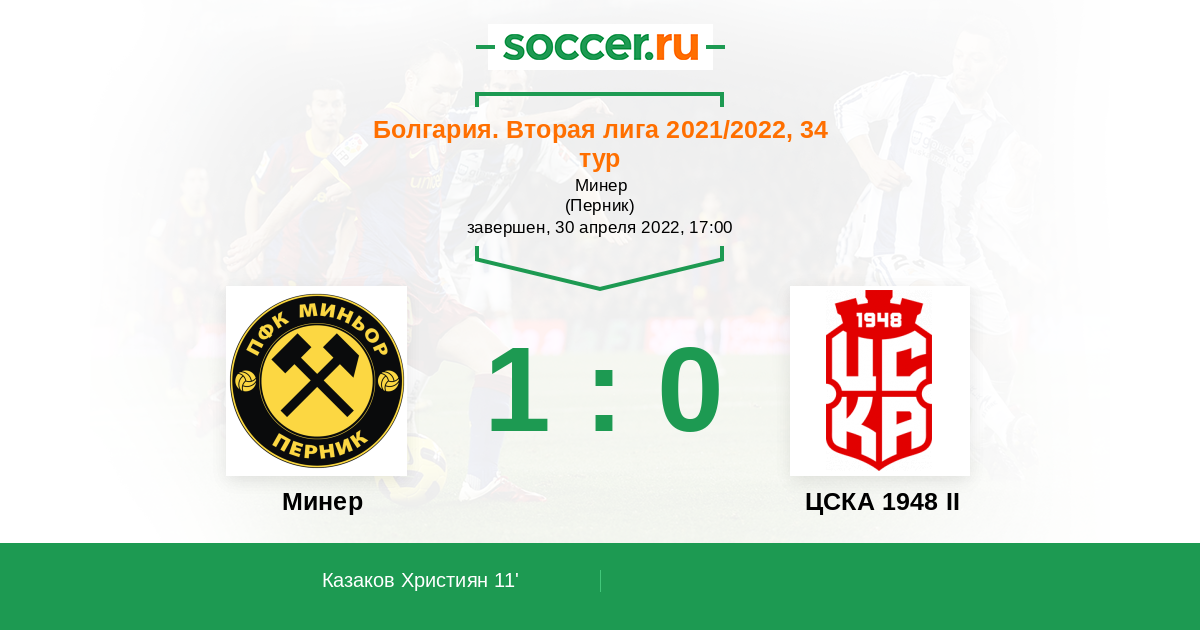11' (1:0) Казаков Християн