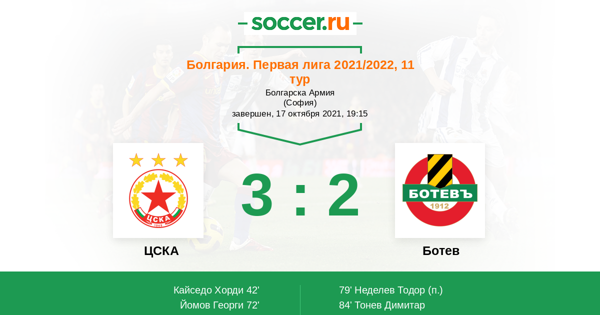 Протокол матча ЦСКА против Ботев