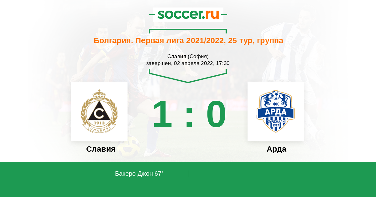 Протокол матча Славия против Арда