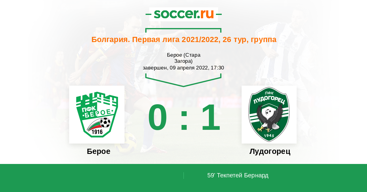 Протокол матча Берое против Лудогорец