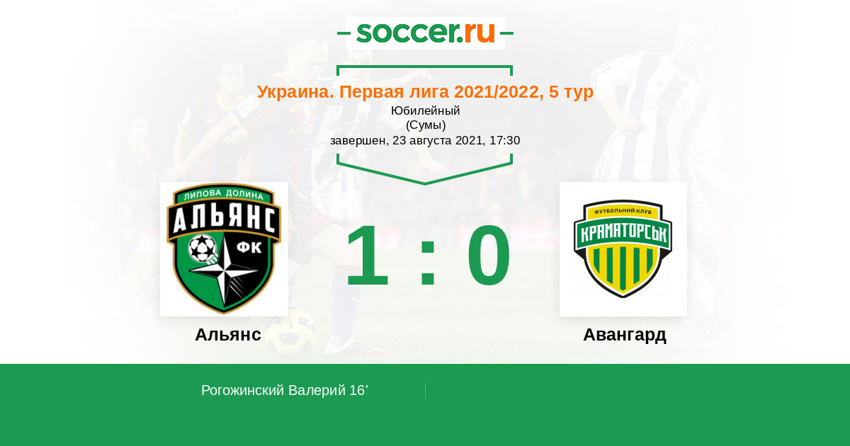 Протокол матча Альянс против Авангард