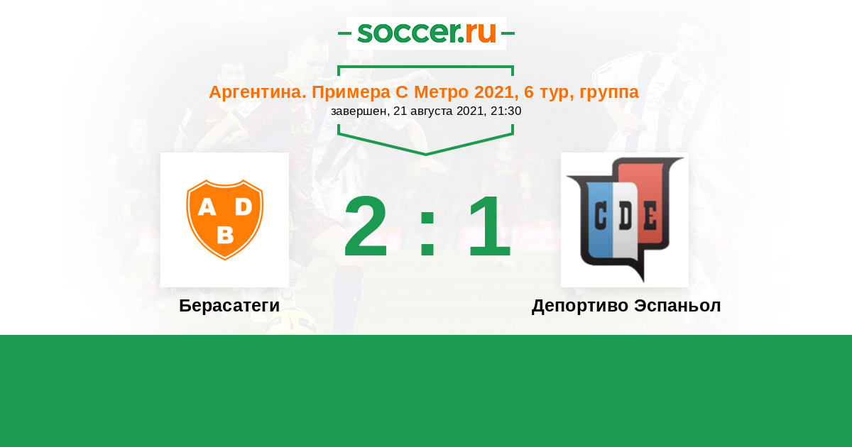 Аргентина. Примера С Метро 26.08.2022 Депортиво Эспаньол Логотип футбольный клуб Депортиво Эспаньол (Буэнос-Айрес) 2:0 Логотип футбольный клуб Берасатеги (Буэнос-Айрес) Берасатеги