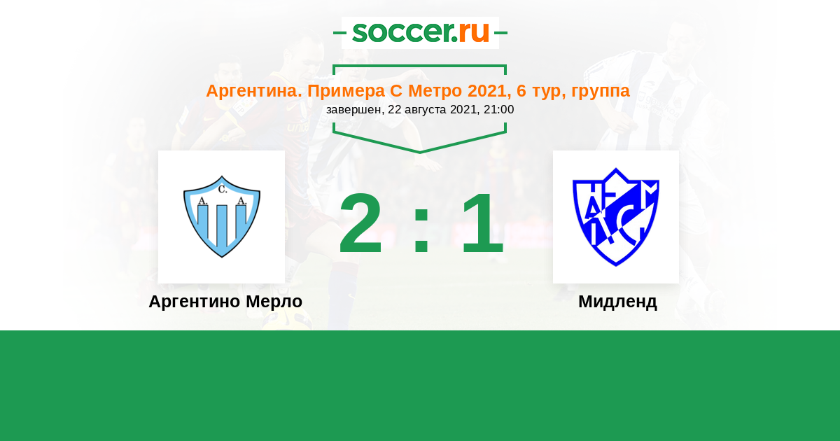 Аргентина. Примера С Метро 29.08.2022 Мидленд Логотип футбольный клуб Мидленд (Либертад) 1:2 Логотип футбольный клуб Аргентино Мерло Аргентино Мерло