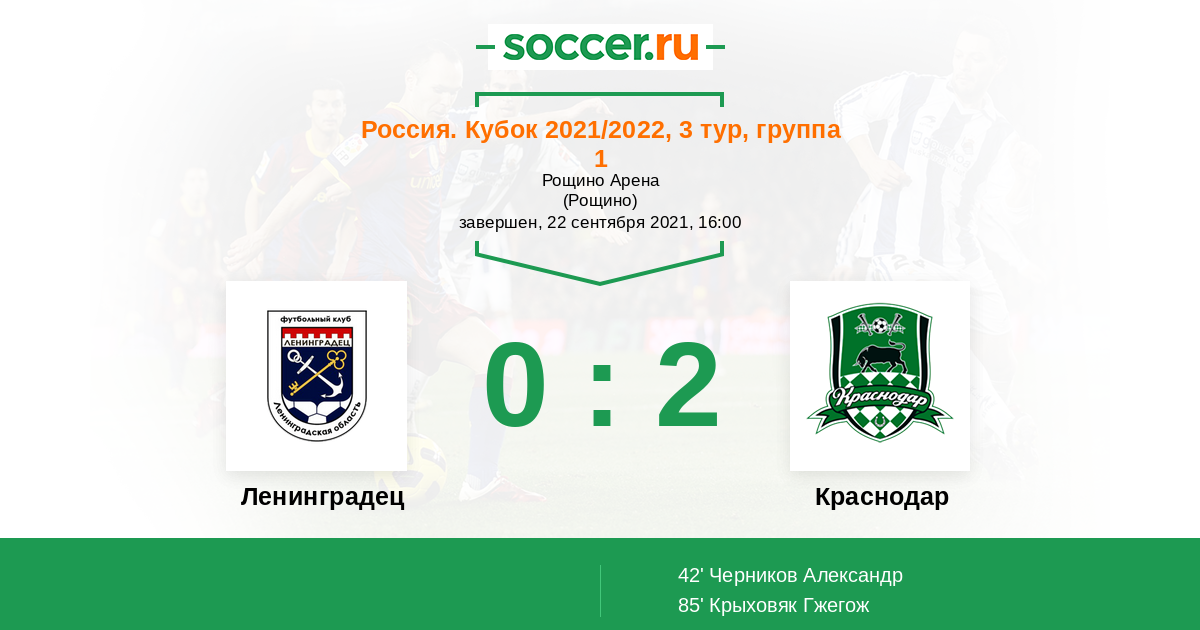 Протокол матча Ленинградец против Краснодар