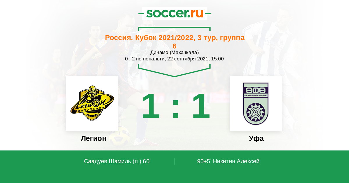 Протокол матча Легион против Уфа