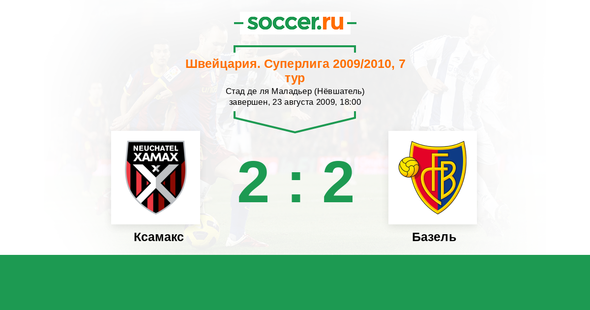 Швейцария. Суперлига 19.04.2009 Ксамакс Логотип футбольный клуб Ксамакс (Невшатель) 2:3 Логотип футбольный клуб Базель Базель