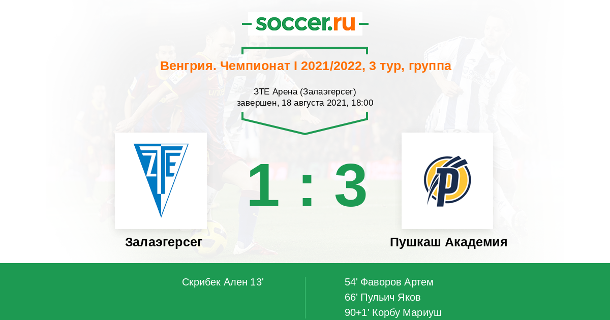 Протокол матча Залаэгерсег против Пушкаш Академия