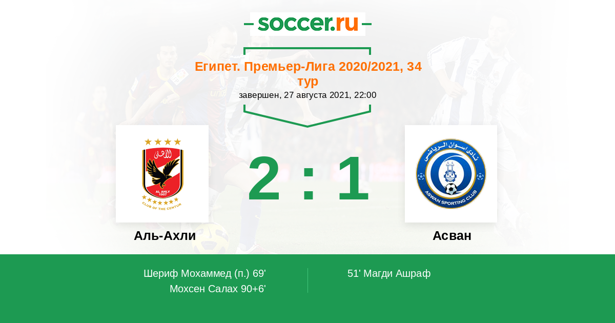 Протокол матча Аль-Ахли против Асван