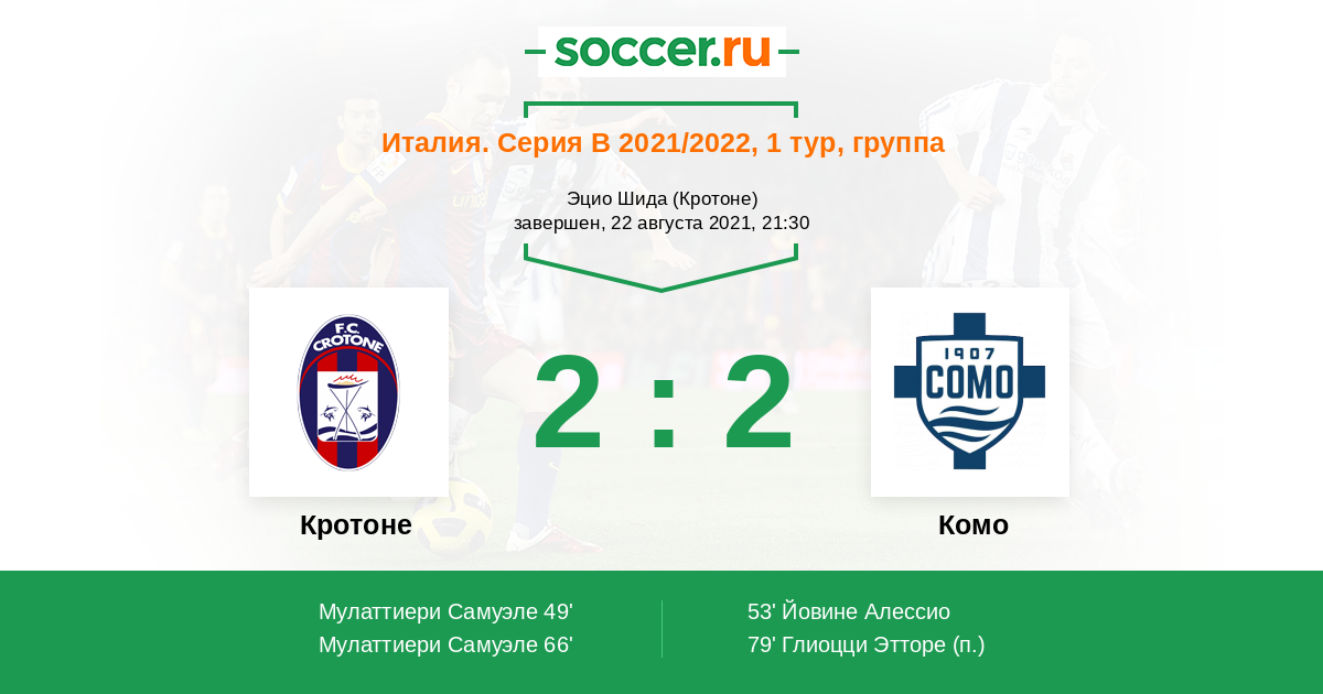 Протокол матча Кротоне против Комо