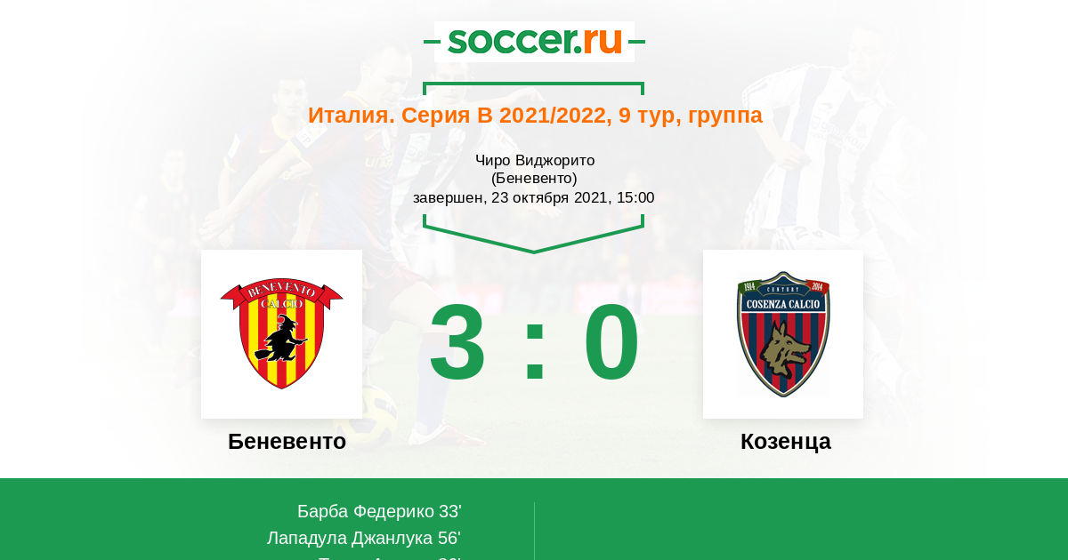 33' (1:0) Барба Федерико (93) (Лападула Джанлука (9))