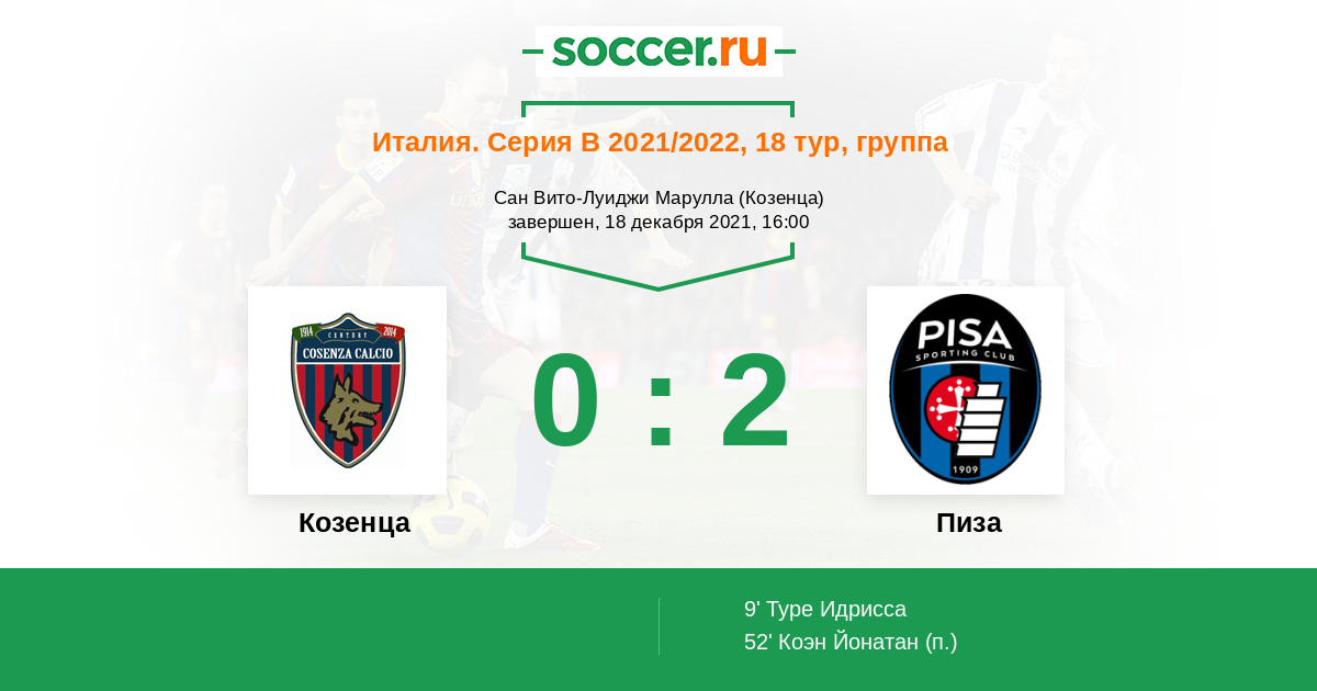 Пиза в этом сезоне похоже серьезно настроена побороться за повышение в классе, команда возглавляет турнирную таблицу. Поэтому предполагаемая победа над соперником на выезде над командой из группы аутсайдеров совсем не выглядит невероятной.