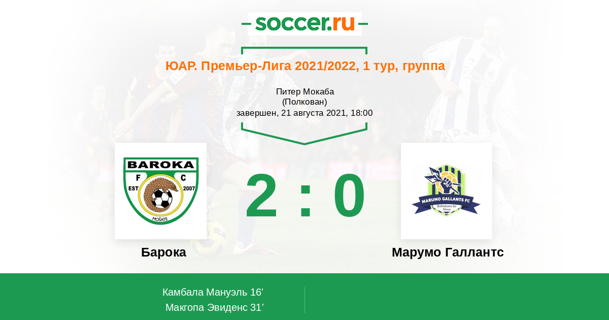 Протокол матча Барока против Марумо Галлантс