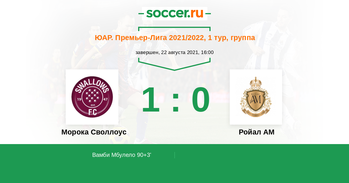 90+3' (1:0) Вамби Мбулело (47) (Макгалва Матлала (35))