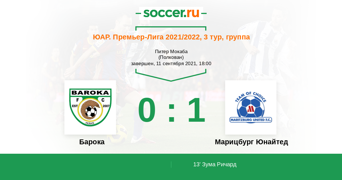 13' (0:1) Зума Ричард (13) (Грэм Трэвис (6))