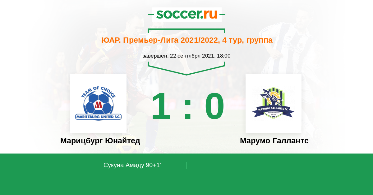 Протокол матча Марицбург Юнайтед против Марумо Галлантс
