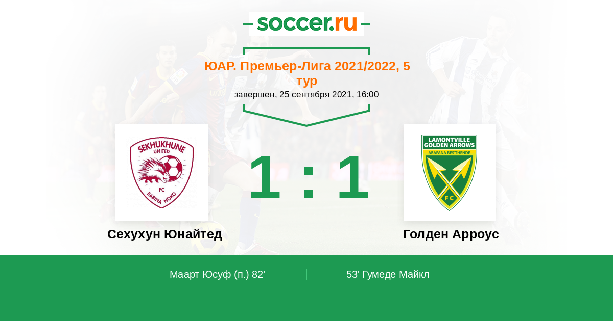 53' (0:1) Гумеде Майкл (33) (Сибия Ндудузо (11))