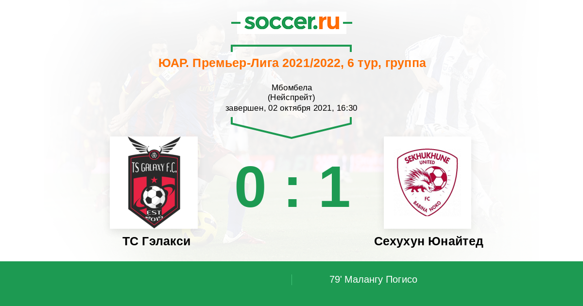 79' (0:1) Малангу Погисо (35) (Патжие Тшедисо (11))