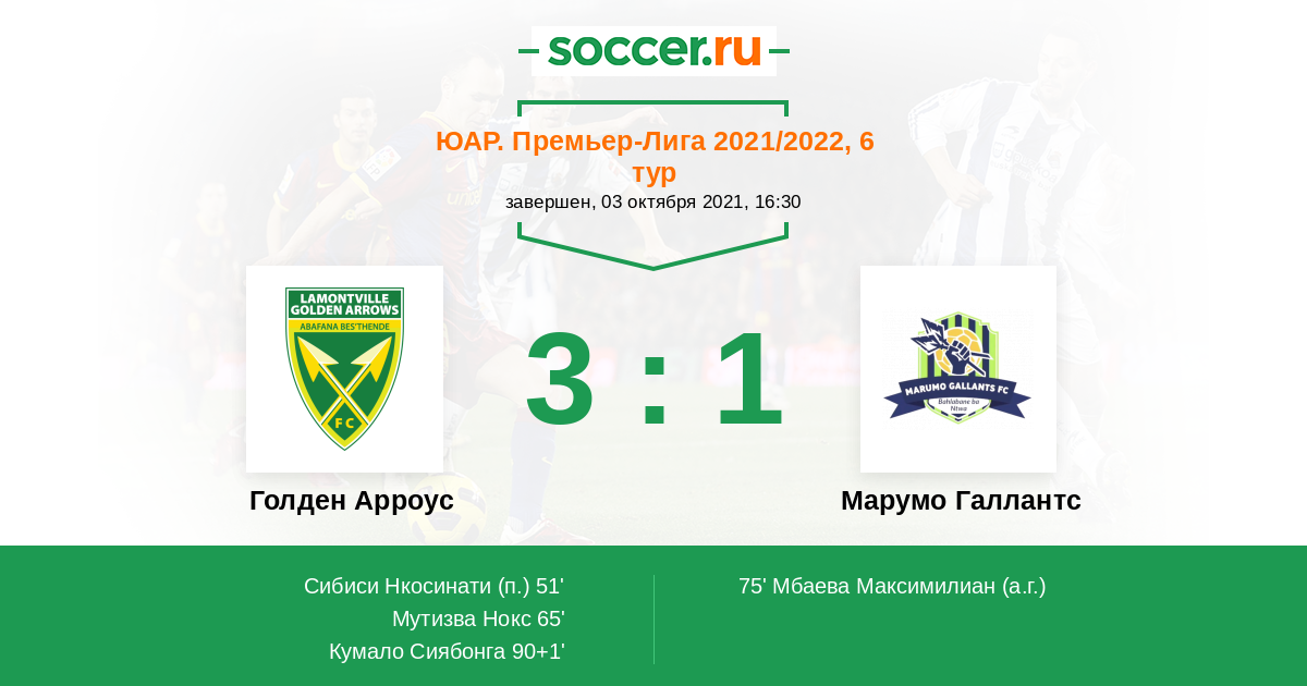Протокол матча Голден Арроус против Марумо Галлантс