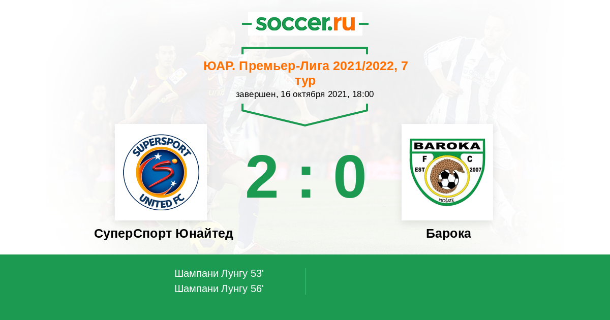 Протокол матча СуперСпорт Юнайтед против Барока