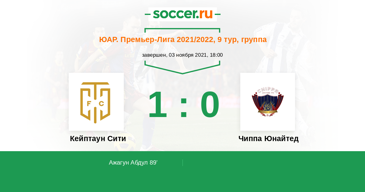 Протокол матча Кейптаун Сити против Чиппа Юнайтед