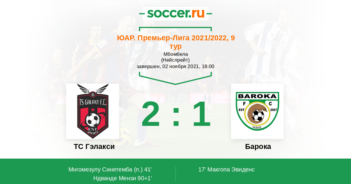 Протокол матча ТС Гэлакси против Барока