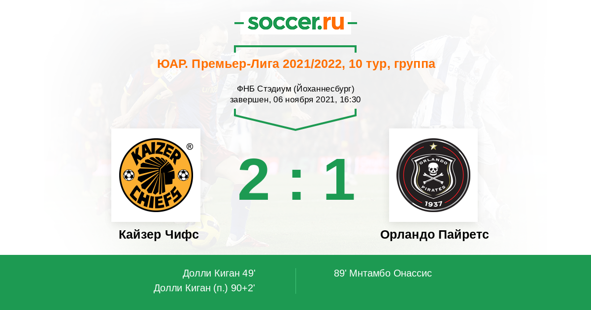 Протокол матча Кайзер Чифс против Орландо Пайретс