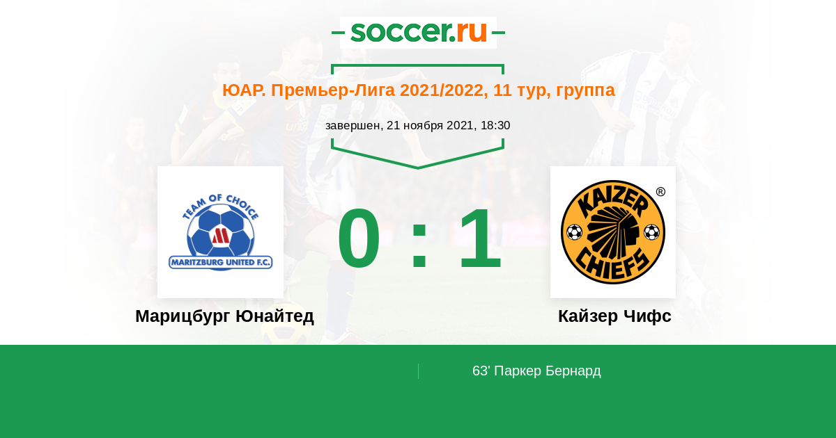 Протокол матча Марицбург Юнайтед против Кайзер Чифс